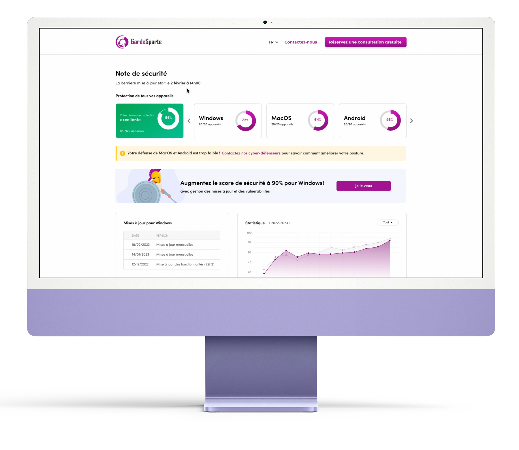 Le Garde Sparte protège vos appareils Windows, Apple et Android contre les logiciels malveillants et de nombreux vecteurs d'attaques et surtout, crée un lien vers nos équipes de support en télésurveillance.
